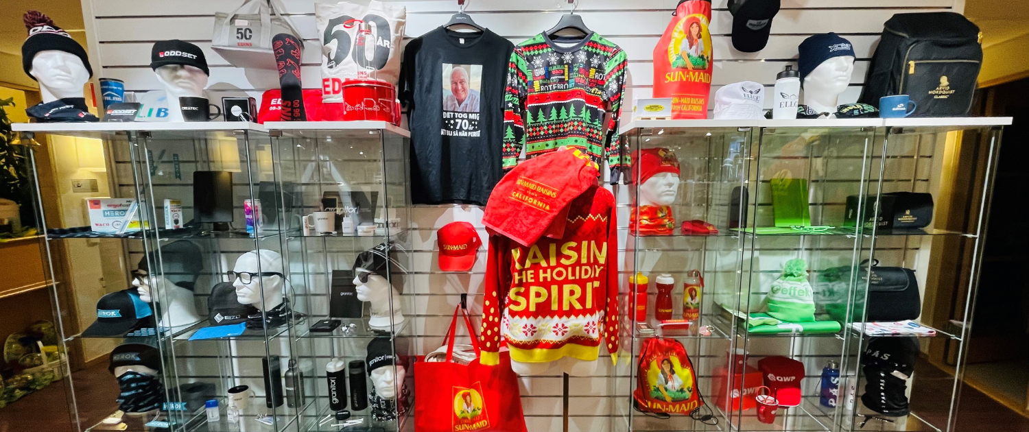 I vår utställning som även är vår stolthet finner ni ett brett utbud av produkter. Vi gör ständigt uppdateringar i den, dels efter säsong men även för att lyfta fram produkter som är speciella just nu. Vårt sortiment är noga utvalt för att matcha vår slogan “Företagsprofilering med kvalitet”.